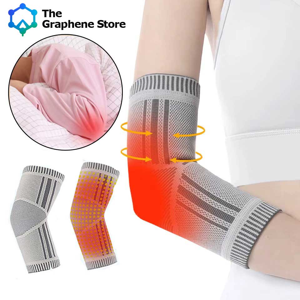 Graphene is one of the most advanced materials in modern science, known for its exceptional thermal conductivity and durability. When woven into fabric, it helps reflect and retain your body’s natural heat around the elbow joint. The result is gentle, consistent warmth that promotes circulation, eases stiffness, and supports recovery—without batteries, wires, or external power.